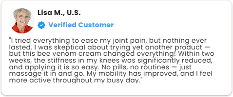 'I’ve dealt with chronic knee pain for years due to arthritis, and nothing truly worked—until I tried AAFQ BeeThera™. Within just a few days, the stiffness started to ease, and I could finally walk comfortably again. After finishing my first jar, I immediately ordered 3 more to ensure continuous results. Highly recommend getting multiple jars if you’re serious about lasting relief!'